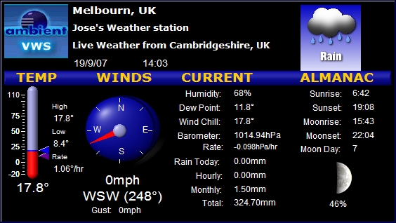 | Barometer | 1012.23hPa Rate -0.284hPa/hr |